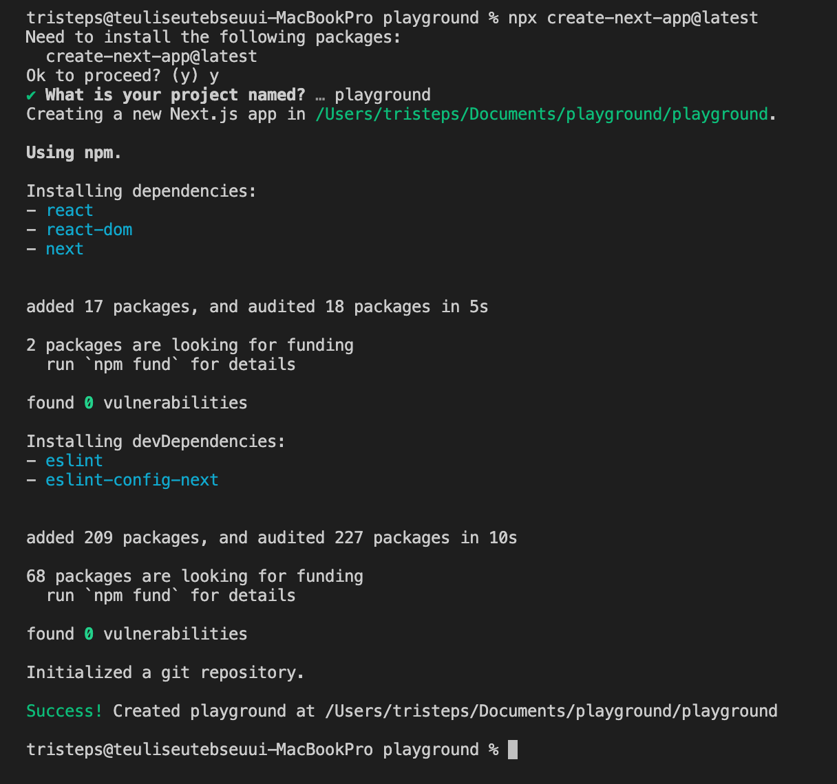 설치 완료가 되었다면 내 프로젝트 생성한 기준 playground 폴더가 새로 생성되었을 것이다.
